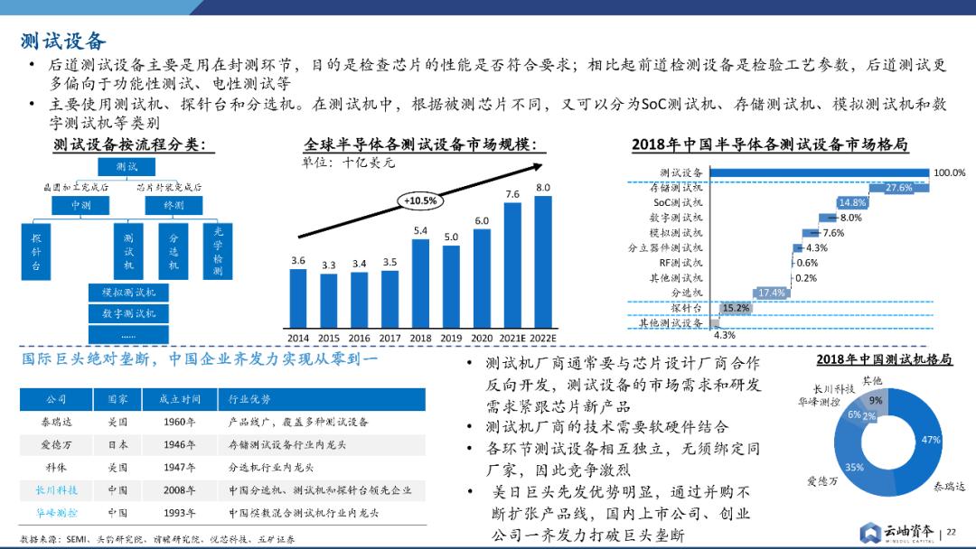 测试设备厂商通常需要提供定制化服务,与设计厂商进行反向开发,以此保证紧跟芯片产品需求。因此测试设备未来也有望成为国产化率较高的赛道。