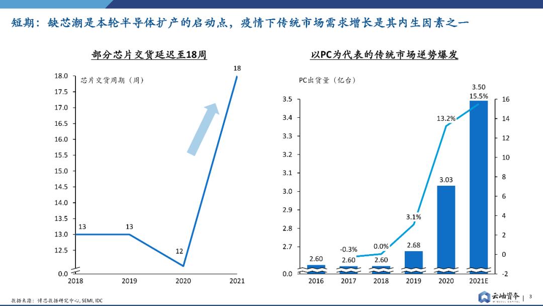 从短期来看,缺芯潮是本轮半导体扩产的启动点,而疫情下,以PC为代表的传统IT市场需求增长是其内生因素之一。