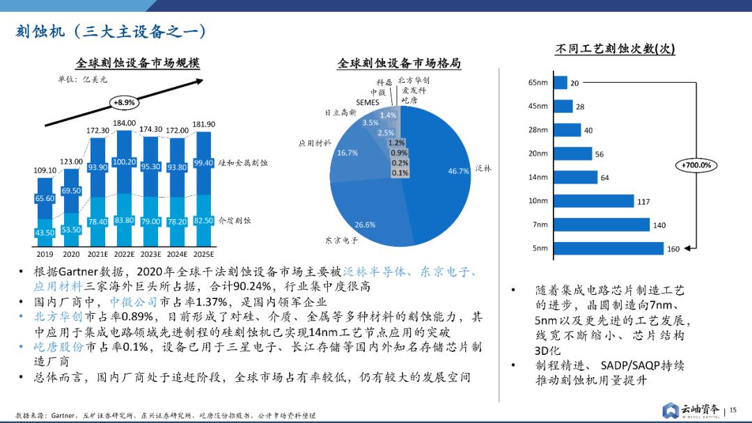 随着工艺制程的不断迭代,刻蚀的步骤不断增加,刻蚀的价值量处在不断提升的过程中。