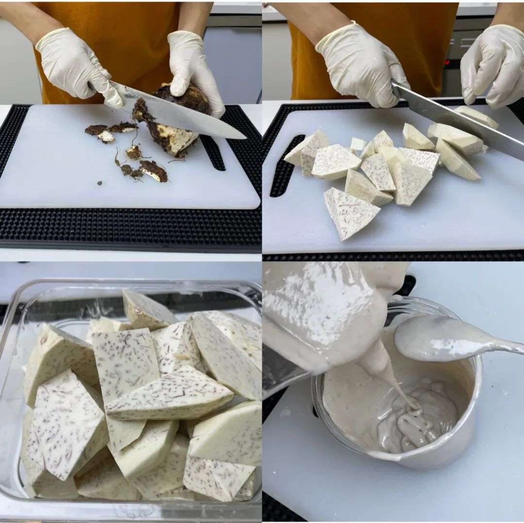 秋冬“主角”芋泥,煮熟后颜色比较暗沉,单纯使用芋泥挂壁,颜值不够高, 选择添加南瓜、紫薯复合搭配,进行增色再挂壁,颜色会更鲜亮。