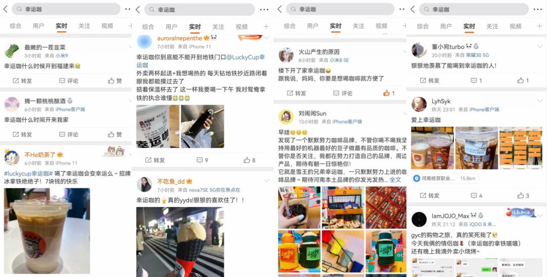 前段时间,在微博上搜索了一下幸运咖,这个5元/杯美式、“贴着地面开店”,鲜少活跃在媒体的品牌,在微博上的声量,高得超出意料。