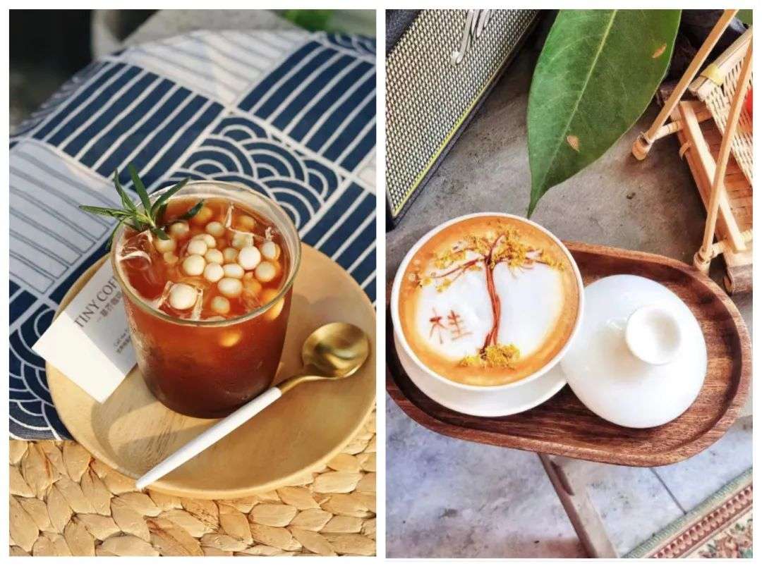 在苏州,有家草芥咖啡,名字就很国风,是苏州大众点评榜第一名,已经开了2家店,他们的爆款套餐是鸡头米美式+小笼包,上镜率最高的甜品是“糖葫芦”,还有别具特色的“竹叶青冷萃”,以及“桂花拿铁”。