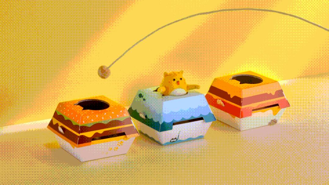 其实麦当劳猫窝和普通猫窝并没有太大差别。“猫窝”共三款,分别以麦当劳单品吉士堡、巨无霸和麦香鱼为灵感设计,猫窝底部配以瓦楞纸猫抓板。随窝附送卡通贴纸,供玩家DIY使用。