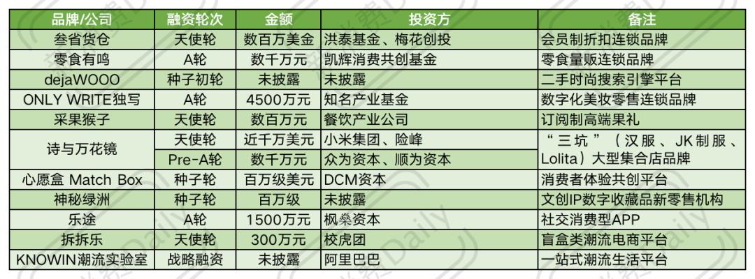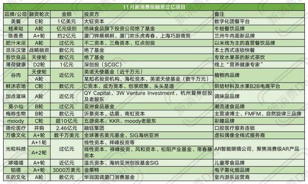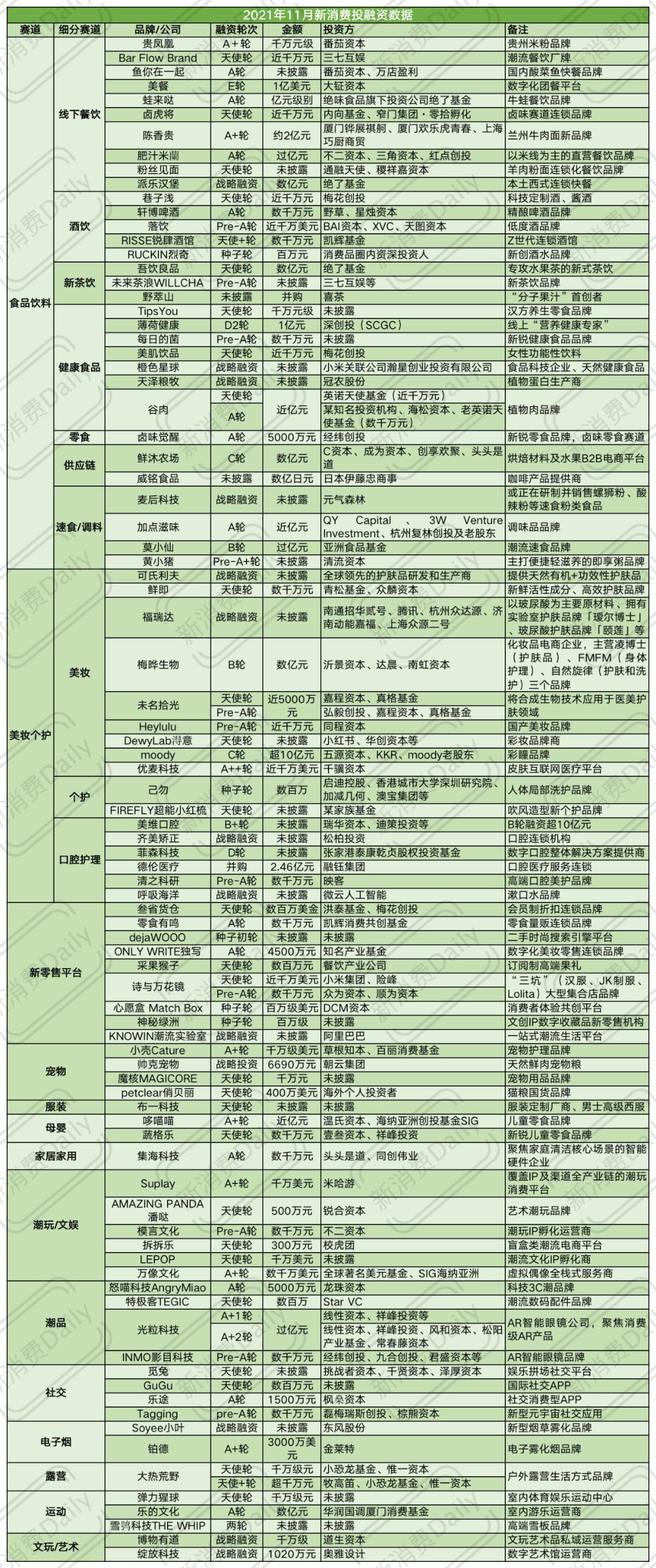 以下为11月新消费投融资数据汇总:
