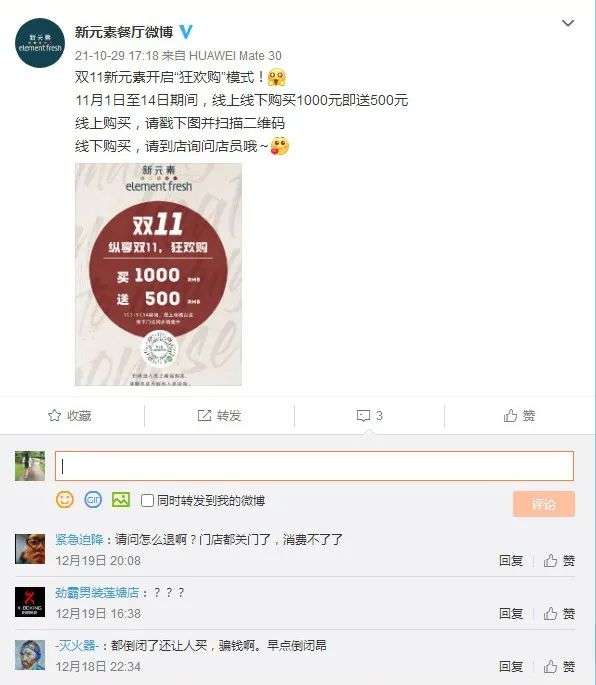 其实消费端的反馈往往就是门店经营出现问题的最直接真实的反应。而新元素的经营状况不佳其实早已有迹可循。