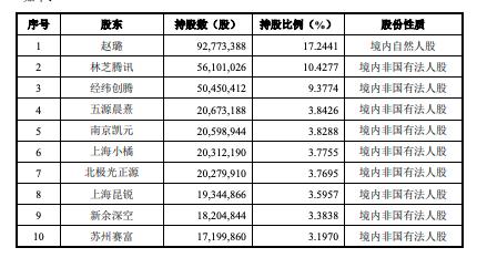 其中,林芝腾讯直接持有发行人10.4277%的股份;五源晨熹、五源晨驭及五源启兴作为一致行动人,合计直接持有发行人5.1852%的股份;经纬创腾及经纬创博作为一致行动人,合计直接持有发行人 10.0317%的股份。