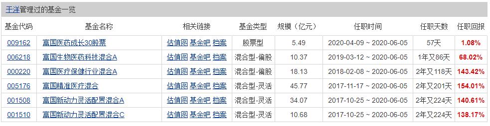 2015年11月起,于洋以安信医药首席的身份加入富国基金,出任高级行业研究员,他任上挖掘多只了医药股投资机会,亦被其他基金经理重仓。