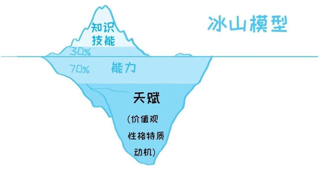 而冰山以下部分是人内在的、难以测量的部分,很多方面也是和个人天生特质有关,很难通过外界的短期干涉加以改变。