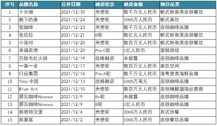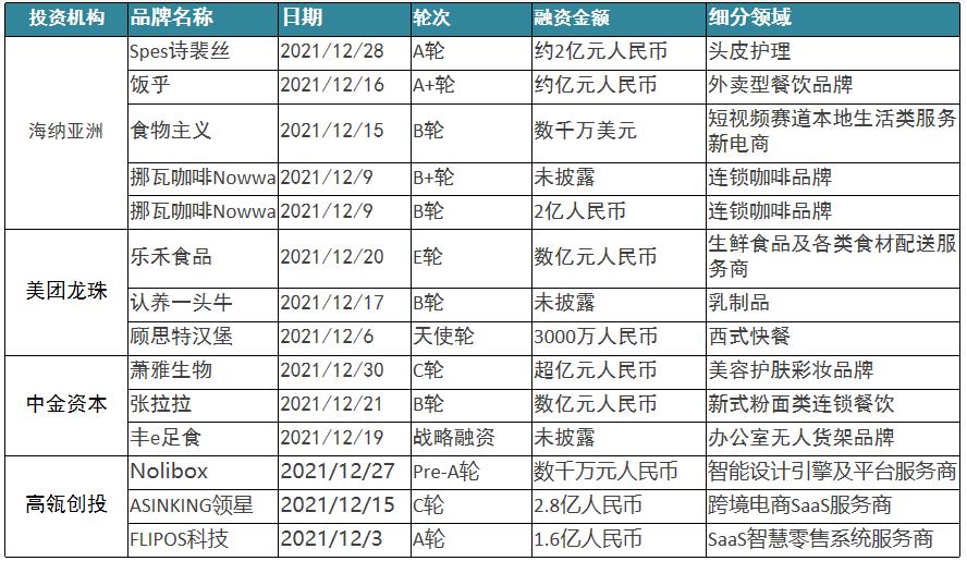 表:2021年12月相对活跃的投资机构及其参与投资的品牌