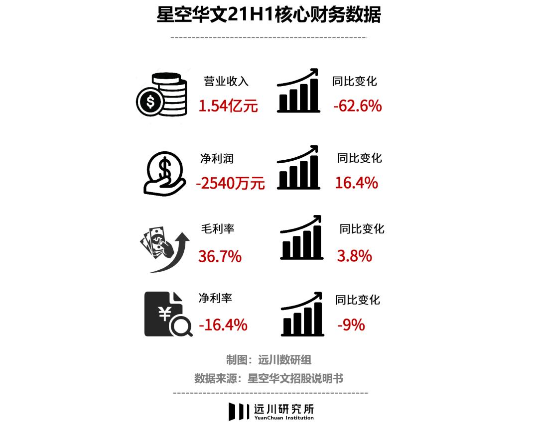 作为《中国好声音》、《中国达人秀》、《蒙面唱将猜猜猜》等一系列爆款综艺的制作方,星空华文面对疫情和综艺变局的双重打击,2021年上半年的营收仅1.5亿元,同比下降63.4%,同期净亏损2540万元,它急需交易所为它“转身”。