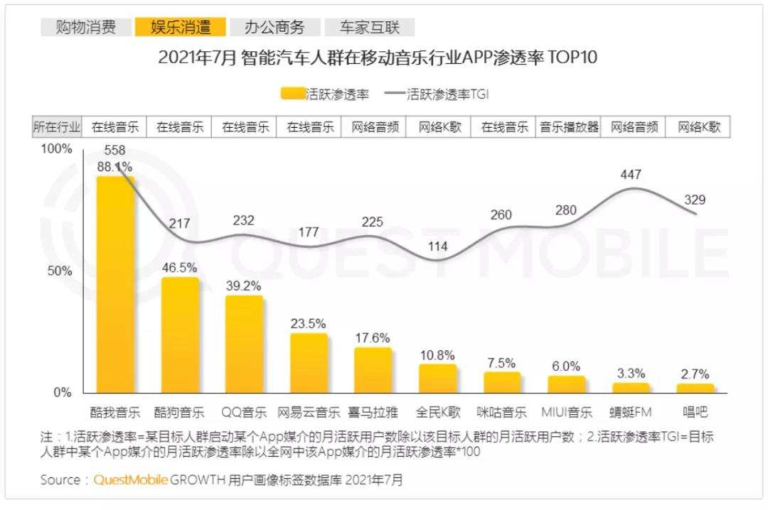 在当下的“汽车屏幕争夺战”中,用户对音频娱乐的依赖度最高,汽车已经成为重要的音乐娱乐消费场景。汽车屏幕也成为继电视、电脑、平板、手机之后的 “第五块屏”。