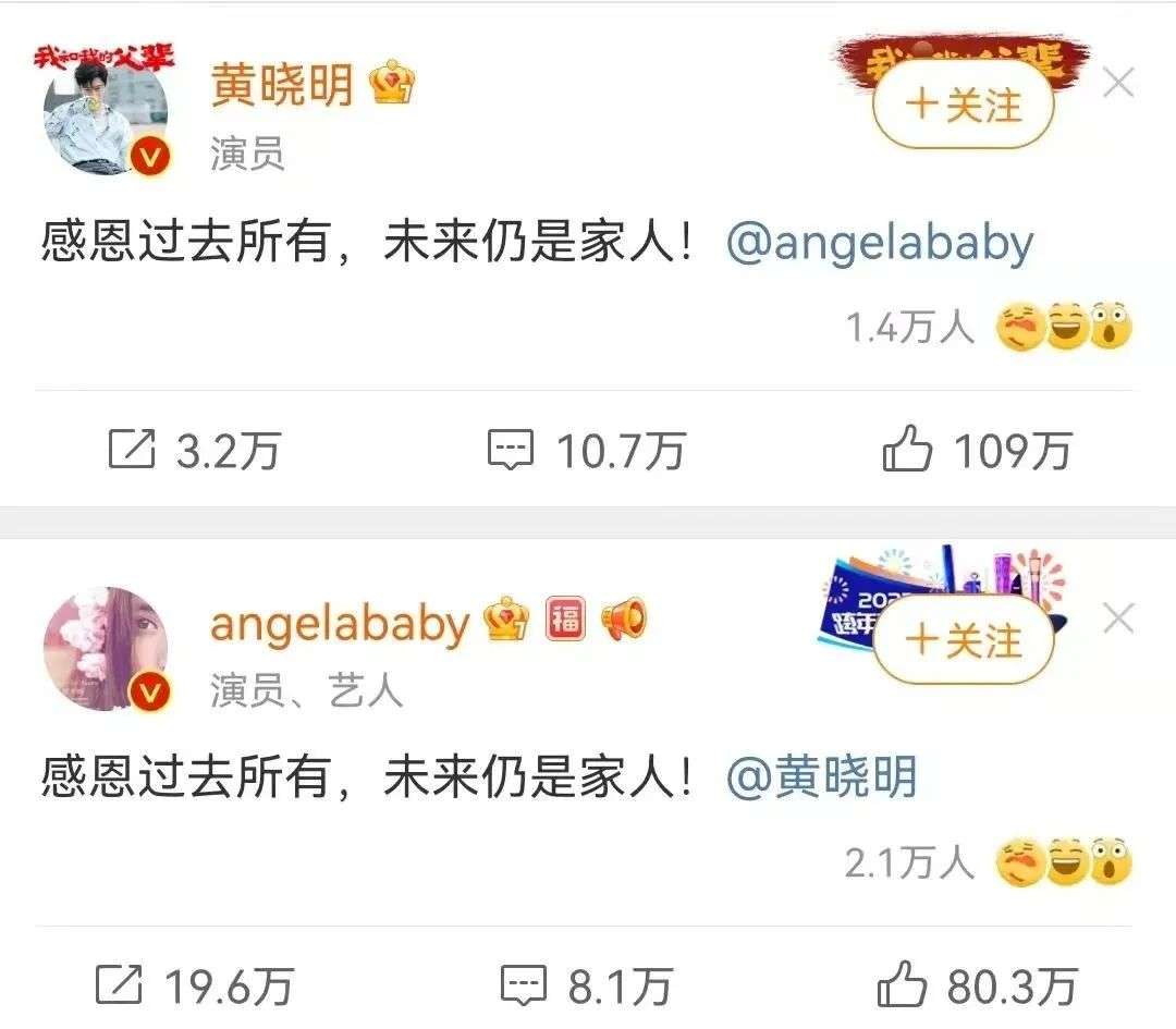 两人齐刷刷地发了声明,“感恩过去所有,未来仍是家人!”