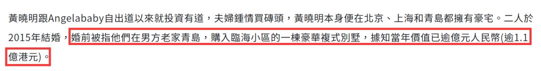 此前曾有媒体报道称,黄晓明夫妇是圈内出了名的“投资有道”。黄晓明本身在北京、上海、青岛就拥有多处豪宅。婚前更是在老家买下逾亿元的复式别墅。