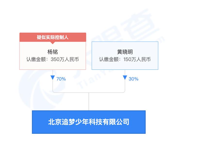 其中,黄晓明的持股比例为30%,杨铭的持股比例为70%。
