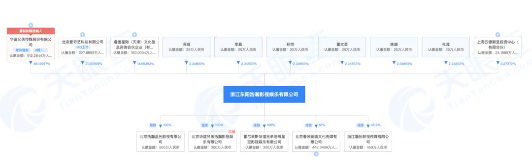 而根据天眼查APP,股东除了华谊兄弟、爱奇艺等 几家有限公司外,均是业内明星冯威(冯绍峰)、郑凯、李晨、陈赫、杜淳,仅有 董文英为圈外人。