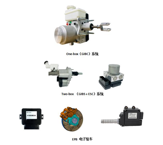 格陆博目前将业务中心放在了线控制动方面,研发了EPB(电子驻车系统)、ESC(车身稳定控制系统)、Two-box(电子助力器与ESC分开配置)、One-box(电子助力器与ESC集成在一起)、电磁阀、底盘域控制器、卡钳总成、制动总成等产品。