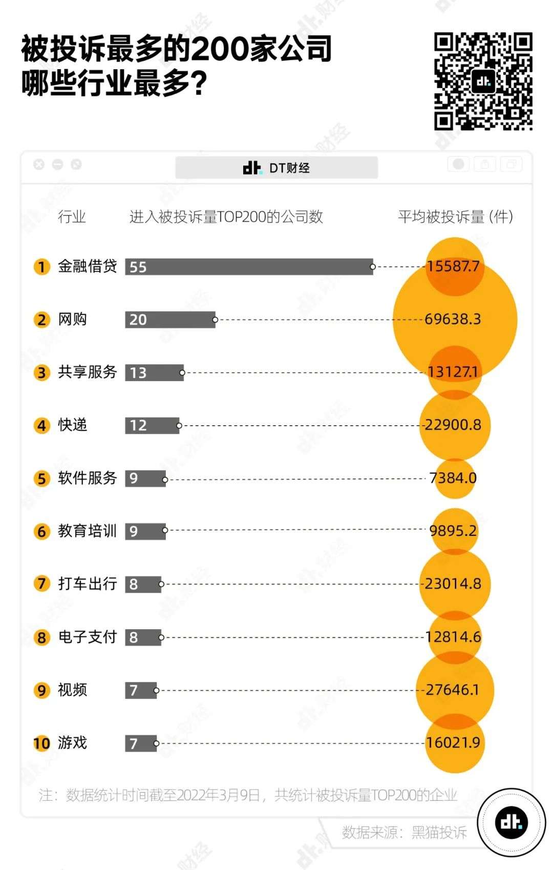尽管金融借贷被投诉的企业最多,但从被投诉的总量来看,网购平台收到了来自消费者最多的不满,其次是金融借贷、通信、快递业和视频平台。