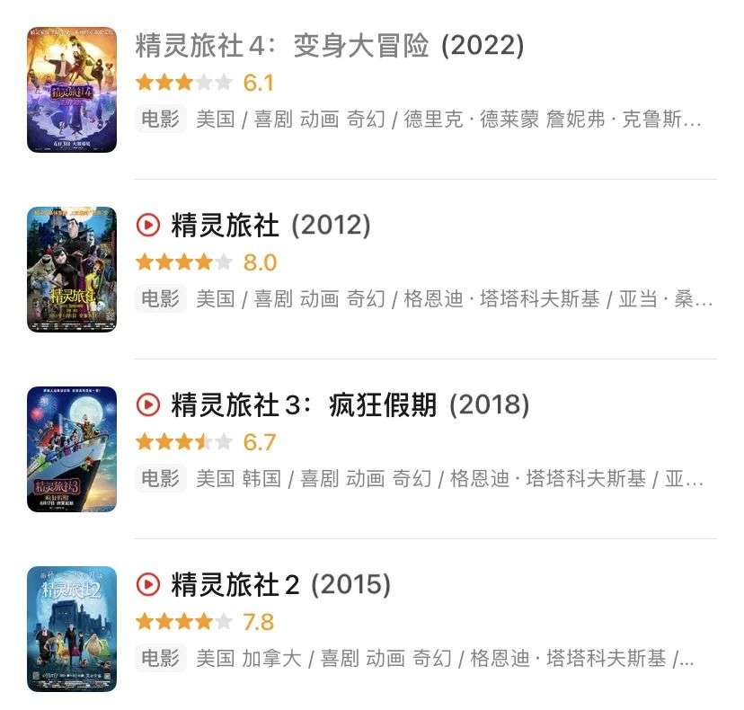 上述三部影片外,《精灵旅社4:变身大冒险》的想看人数最为突出,但该片早前已在国外流媒体平台播映,在豆瓣也已经开分,口碑创系列历史最低,正式上映后或也不会创造多大惊喜。