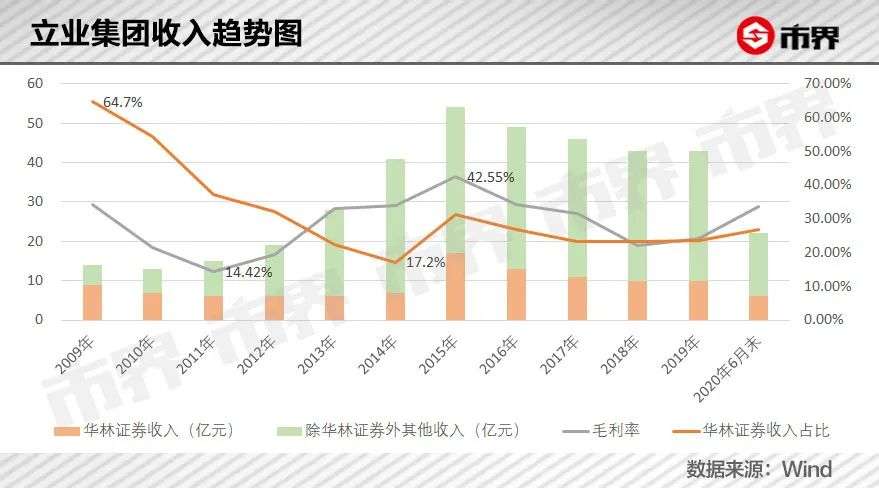 与此同时,整个集团除华林证券之外的,以变压器设备和电池制造业为代表的实业板块,贡献的收入占比不断提高,整体毛利率也从2011年的14.42%提高至2015年的42.55%,呈现出“欣欣向荣”的趋势。