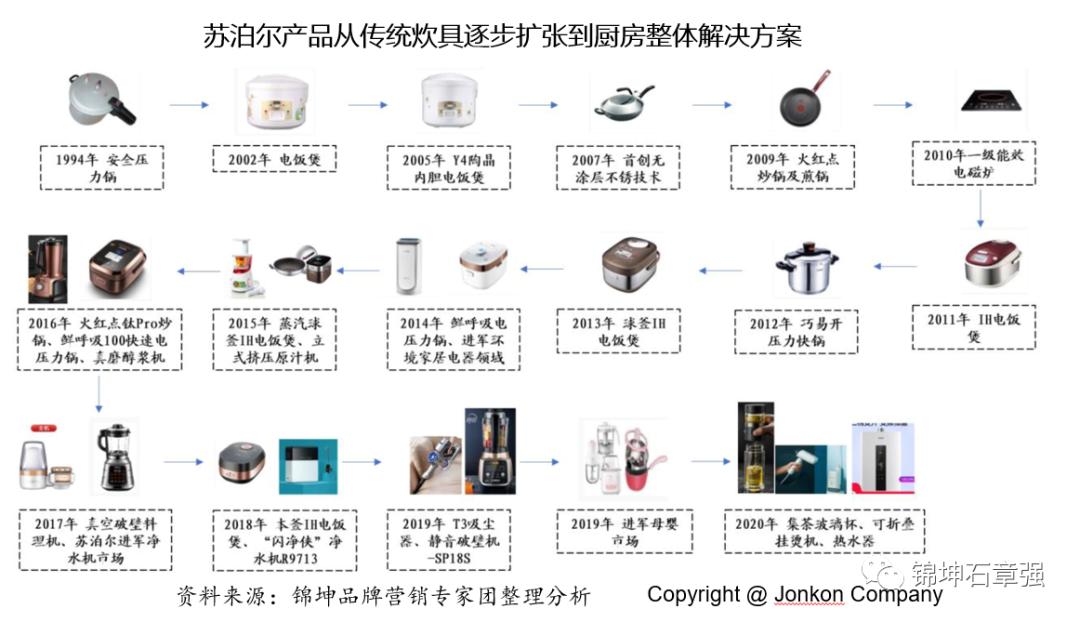 通过苏泊尔的三个阶段,我们可以很明显的感受到其不同阶段的品牌顶层设计。