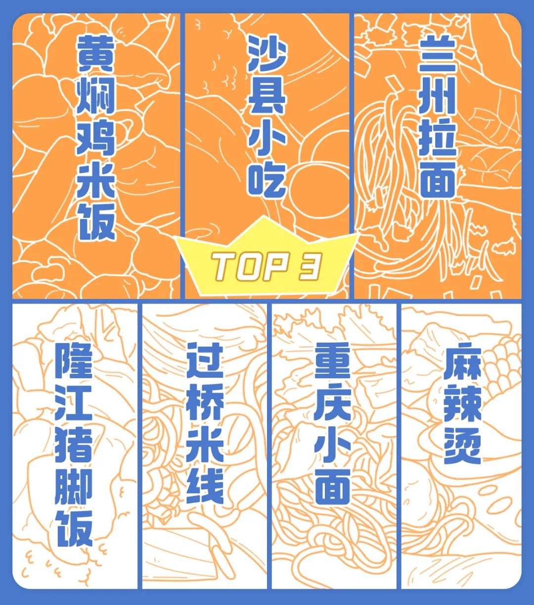 沙县小吃、黄焖鸡米饭、兰州拉面,一直是中国民间餐饮届华山论剑的 TOP 3。此外,隆江猪脚饭、过桥米线、重庆小面、麻辣烫等,也高踞外卖美食和路边小店的榜单之上。