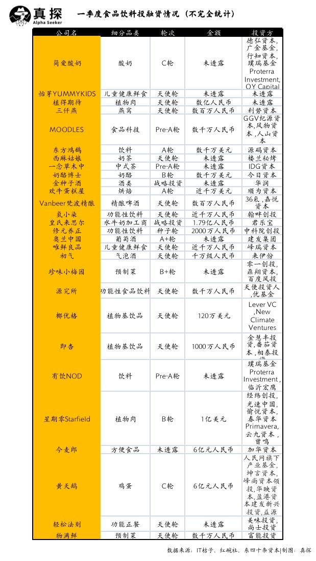 另外,属于“替代蛋白”领域的椰子酸奶品牌椰优格、植物杏仁奶品牌即杏也在今年一季度获得天使轮融资。