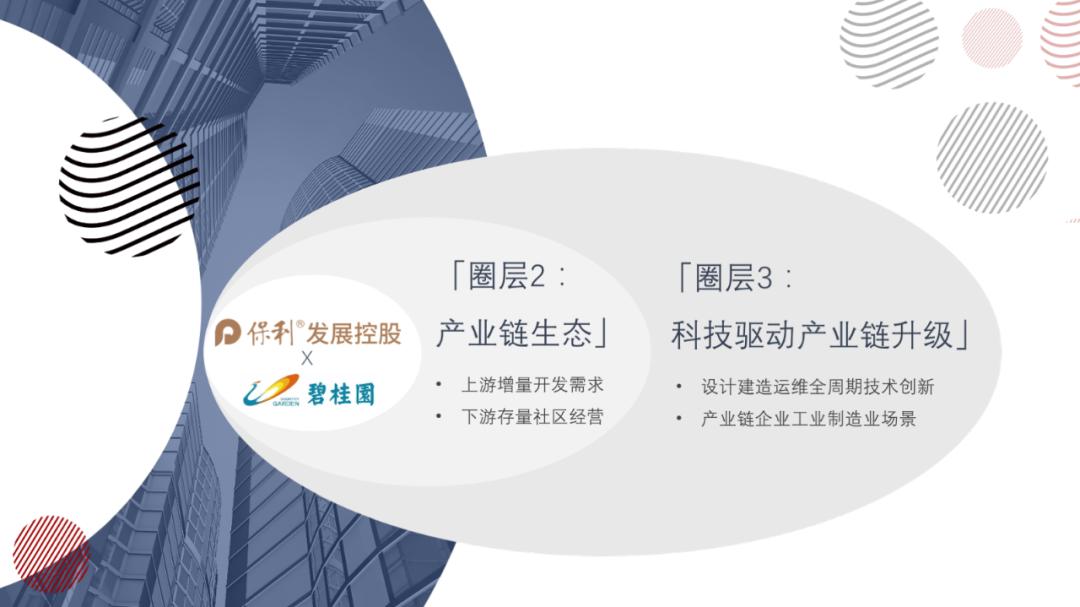 保碧基金旨在打造产业链生态圈,通过资本连接,最大化发挥产业链生态和资源的价值,同时为一系列新技术提供优质的应用场景,形成保利+碧桂园基础不动产开发与运营业务为第一圈层,产业链上下游重点合作伙伴为第二圈层,地产全链条技术创新场景和产业链生态伙伴的制造业场景为第三圈层的生态圈。依托一二三圈层联动布局,打通三个圈层,实现产业协同,赋能已投企业。