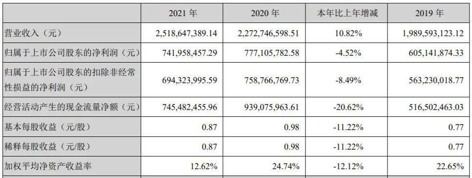 财报显示,2021年,乌江榨菜营收为25.19亿元,同比增长10.82%,净利润却仅为7.42亿元,同比降低4.5%。这主要是因为在后疫情时代,乌江榨菜很难继续保证成本、渠道、营销的平衡。
