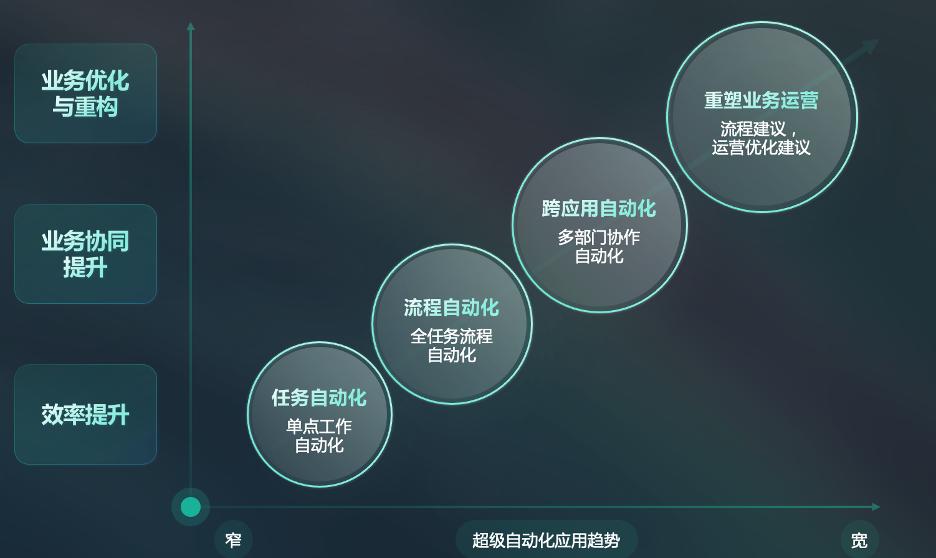 然而,实际业务往往横向跨越多个部门和系统,需要大量的协调工作,比如金融机构交易执行、公共事业的一网通办,或是到内部员工入离职系统权限管理等等环节。业务流程中涉及的系统和数据越多,步骤越复杂,想要自动化的难度就越大。大部分企业如要实现自上而下的统一运营管理,只能通过大量的人力进行跨环节操作,或者采用定制开发和人力服务外包。