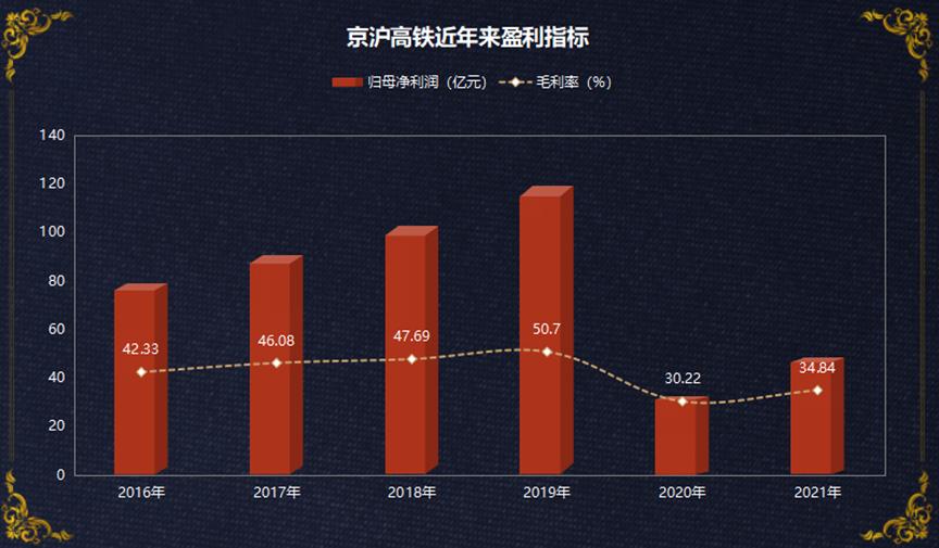 受到疫情冲击,2020年京沪高铁营收、利润一度大幅下滑。京沪高铁的“盈利神话”暂时终结。