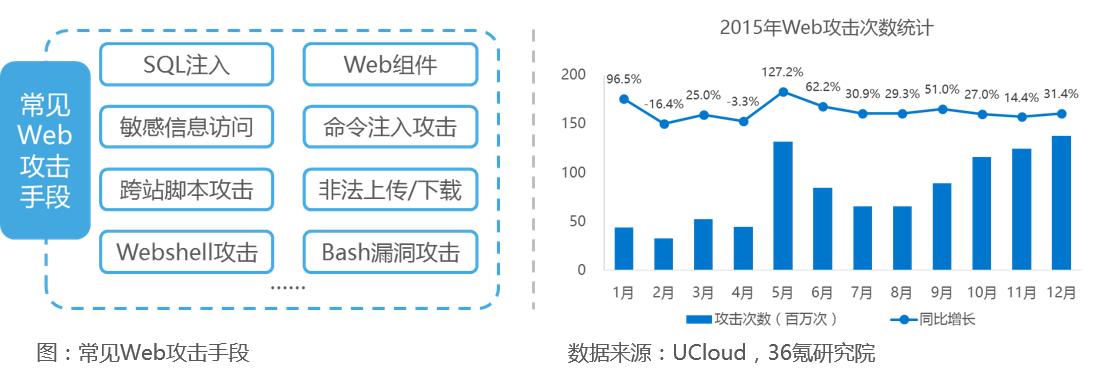 Web攻击是指利用Web服务器或网页自身的漏洞进行攻击,以盗取合法用户的账号,获取敏感信息。2015年我国遭受的各类Web攻击共计990.38百万次,比2014年同比增长36.5%。