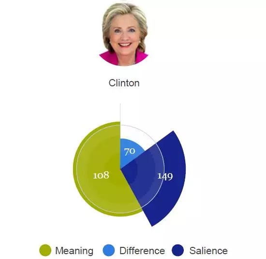 从“希拉里品牌”的数据来看,她很像容易获得和可靠的品牌,例如美国邮政(US Postal Service)、美国航空(American Airlines)和佛罗里达旅游局(VisitFlorida.com),但这些品牌往往不大具有创新性,也不是颠覆品牌。换句话说,希拉里对大多数人来说是“有意义的”和“知名的”,但是她没有什么特别的地方。