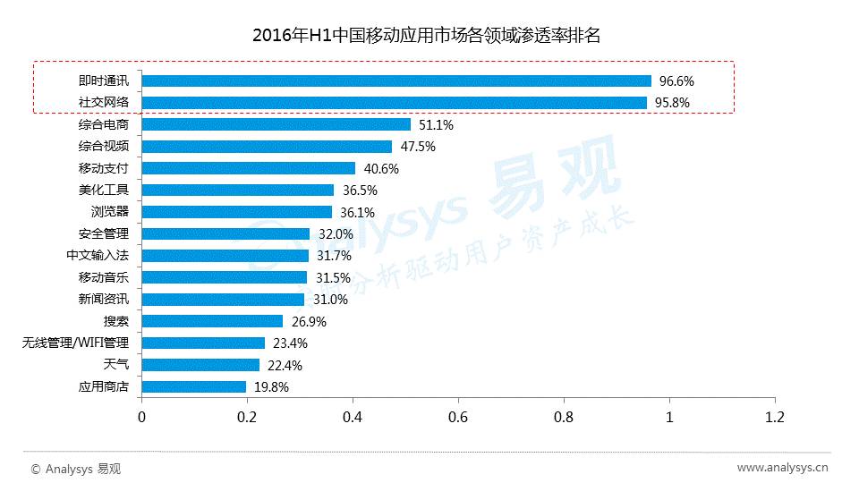 即时通讯和社交网络渗透率超过95%