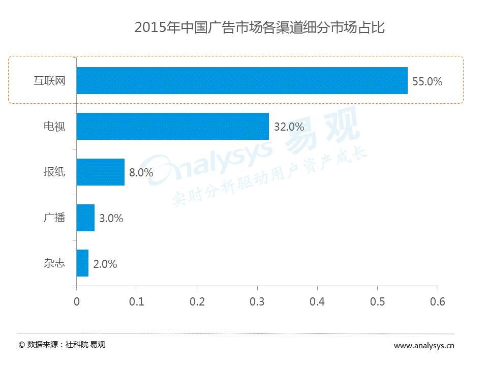 2015年中国广告市场互联网占比达55%