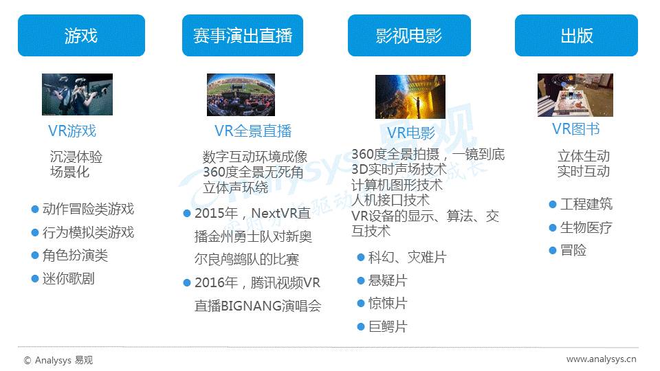 VR/AR+媒体从游戏、赛事演出直播、影视电影和出版4大领域结合