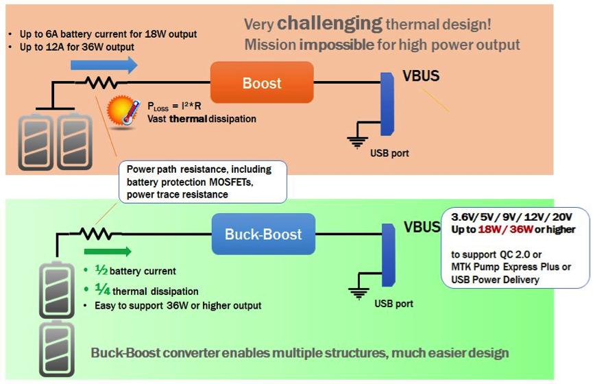 但随着Type-C 出现,一个接口可以连接所有的电子设备,需要承受不同的电压,传统的单独Boost(升压)和Buck(降压)的结构已经不能满足市场需要,Boost-Buck(升压-降压型)电源管理芯片应用而生,可以实现升压、降压和反向。