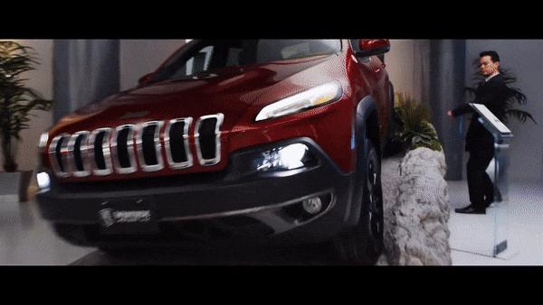 摆在橱窗里仅做展示用的汽车原型,也按耐不住想到街上跑一跑的欲望,破窗而出,玻璃渣飞溅……