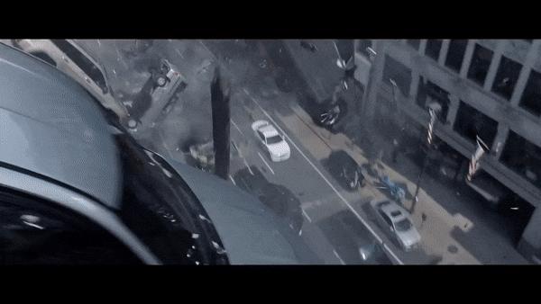 若干辆汽车从大楼里破窗而出,飞驰而下是怎么个意思?那像“丧尸大军”一样飚过街头,然后撞击堆叠在一起的车队又是怎么个意思?