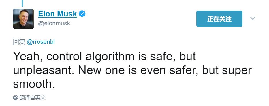 但新硬件车主的行车体验仍然存在问题,用Musk本人的话说,那次更新的控制算法带来的行车体验是安全的,但很难说愉悦。而新算法变得除了变得更加安全,更重要的是行车体验超级平顺!