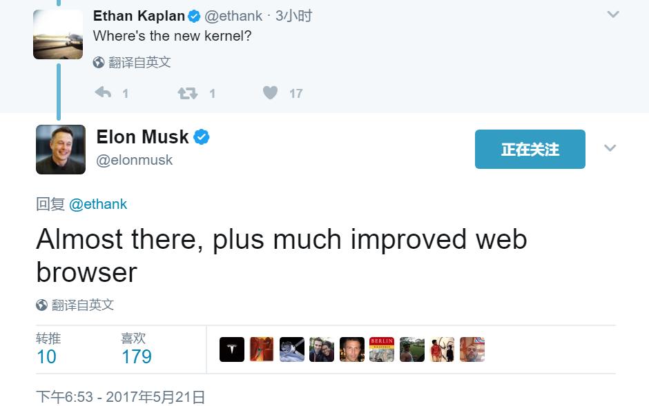 随后Musk再次承诺,8.1更新将很快推送。并暗示8.1更新中包含将浏览器底层的 Linux OS 内核会升级到4.4版本,这会使浏览器的使用体验从“几乎不可用”变成“OK”。