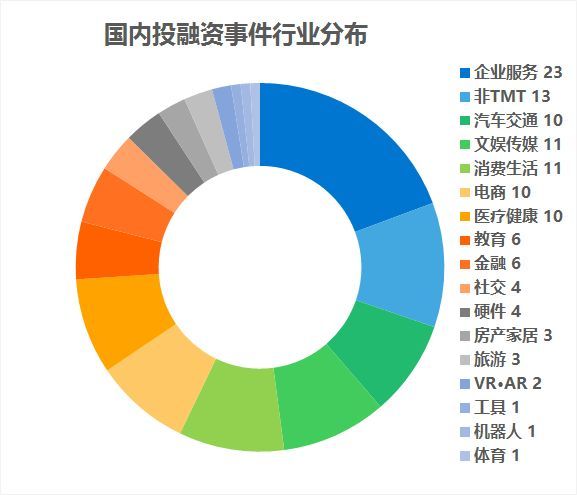 本周创投助手共收录国内投融资、上市事件119条(包含了新三板和二级市场的数据,详情见文末汇总表),其中5家公司上市,19家公司挂牌新三板,战略投资和并购事件共发生10起;有17个行业发生融资,行业分布榜的前3名分别是企业服务、非TMT和汽车交通。