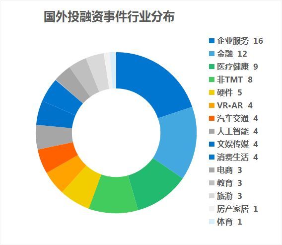 本周创投助手共收录国内媒体曝光的国外投融资、上市事件81条;行业分布榜的前3名分别是企业服务、金融和医疗健康。