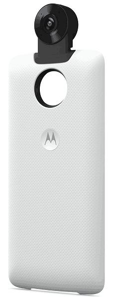 这个配件目前只是在加纳举办的一场新闻发布会上进行了展示,它可通过塑胶材质的顶部,与Moto Z系列设备相连,并具有两侧的镜头,以捕获周围环境的360度图像。