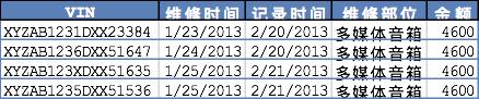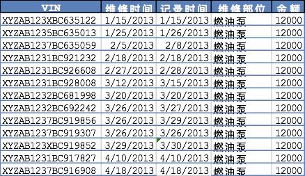 从以上被标注欺诈嫌疑的案件中可以看出,位于东莞的该服务商有习惯性高金额欺诈嫌疑,于13年6月先后两次被拒赔后,两个月内没有发生针对动力转向系统的索赔案件,并从九月开始恢复了重复性索赔。