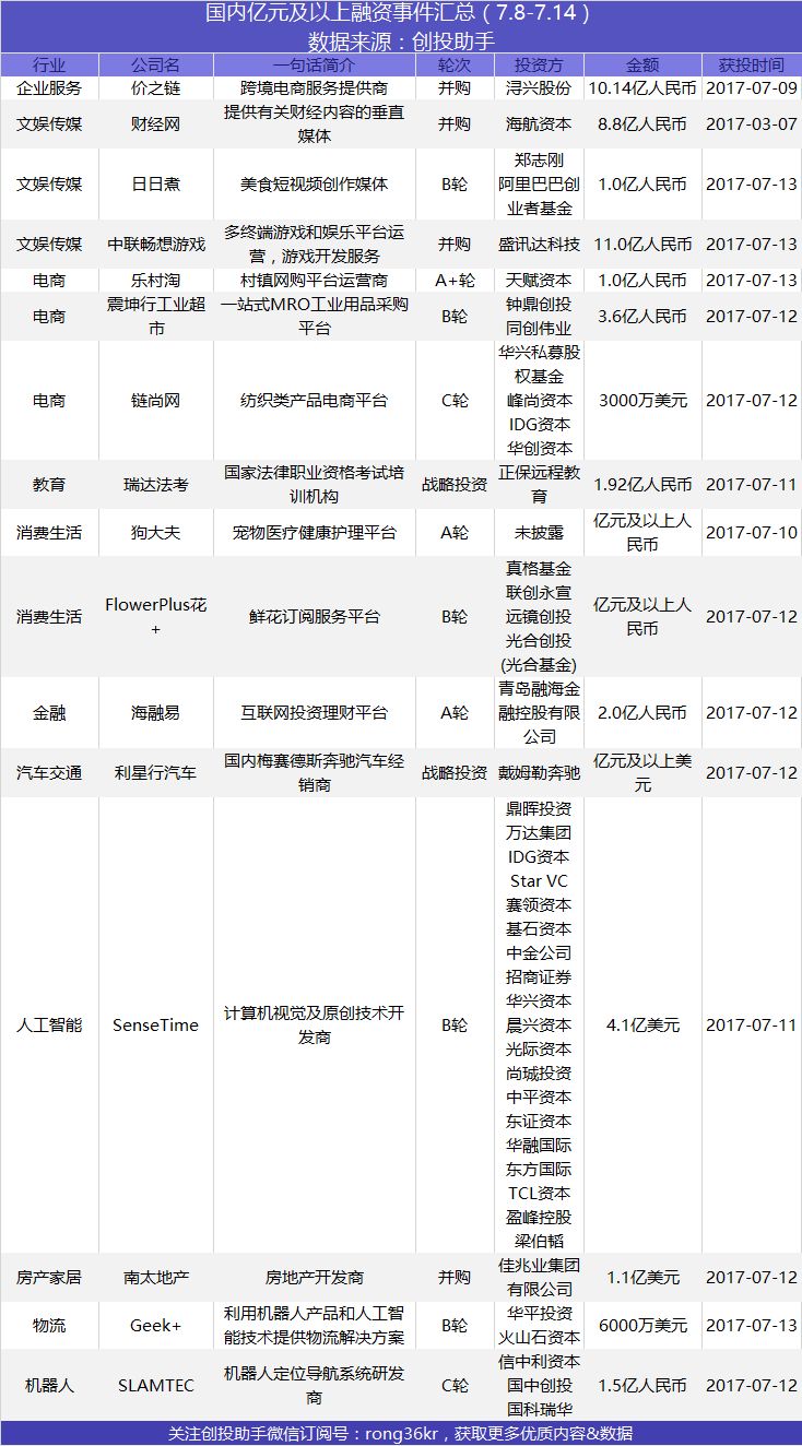 想要获取国内、外融资完整长图,关注创投助手订阅号(rong36kr),后台分别回复“国内”、“国外”即可获得