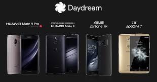 迄今为止,可兼容Daydream虚拟现实范式的设备和智能手机种类依然相当匮乏,极大地限制了消费者的选择空间——Google自家的Pixel头显设备,摩托罗拉的Moto Z,华为出品的Mate 9 Pro及保时捷设计版Mate 9,中兴通讯(ZTE)的Axon 7手机以及由华硕研发的Zenfone AR手机(其搭载了Tango技术,可实现AR,VR双功能)。