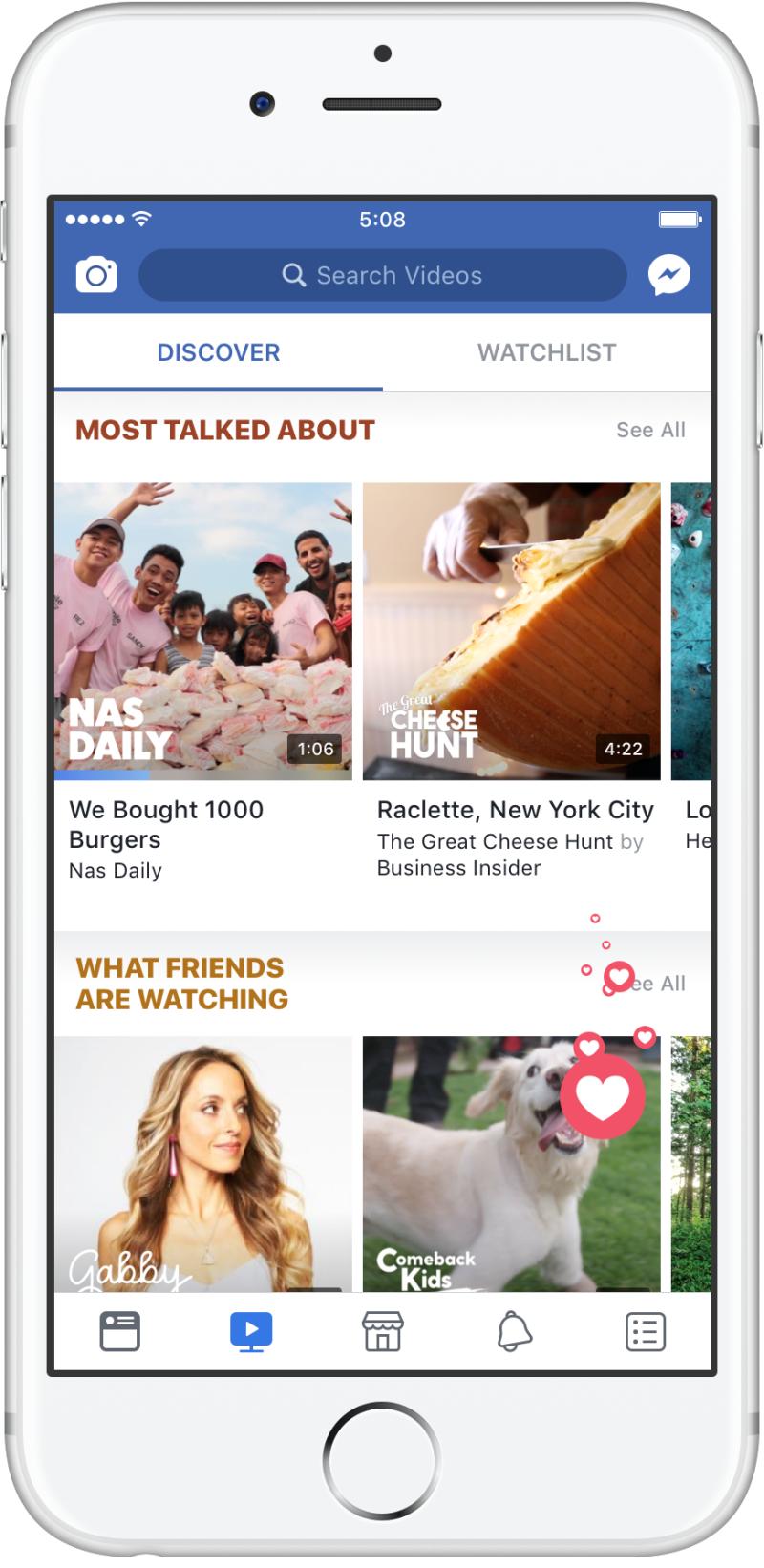 Facebook新的视频分区不是人们想象中一家价值数千亿的公司能做出来的那样。视频内容包括Nas Daily,来自一个辞去工作,“和他的全球粉丝一起”制作一分钟旅行视频的人(预览的题目是“我们买了1000个汉堡”);励志演说家Gabby Bernstein与Facebook用户互动的直播秀;孩子们可以参与其中的做饭节目;以及有可能成为最大亮点的美国职业棒球大联盟的一周比赛直播。