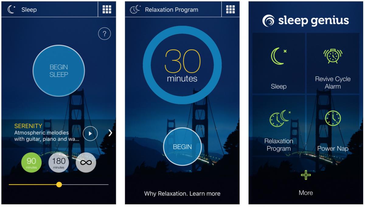 睡眠天才提供一个基于研究的放松程序来解决失眠和睡眠问题。支付4.99美元用户便能得到解决四个放松难题的方法、一个小憩的程序以及一个基于睡眠周期的闹钟。