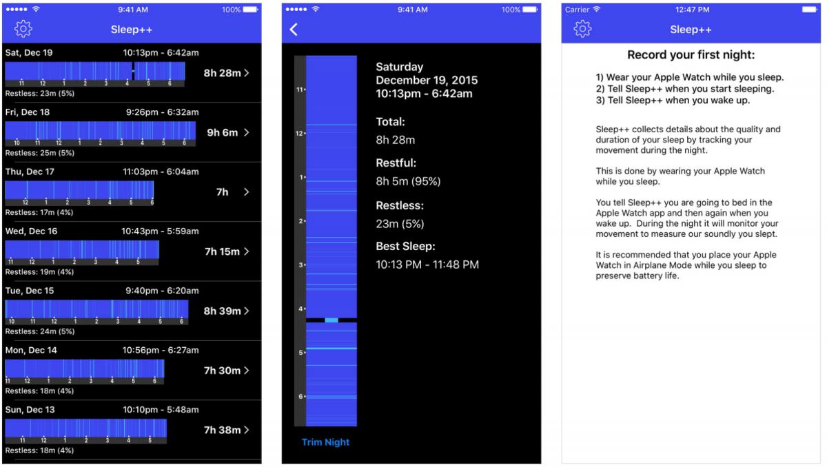 Sleep++就是这样一款应用程序,该应用程序可以跟Apple Watch结合,跟踪宁静的睡眠状态,并告诉用户他们的最佳睡眠时间以及用户睡眠时间的确切时间。