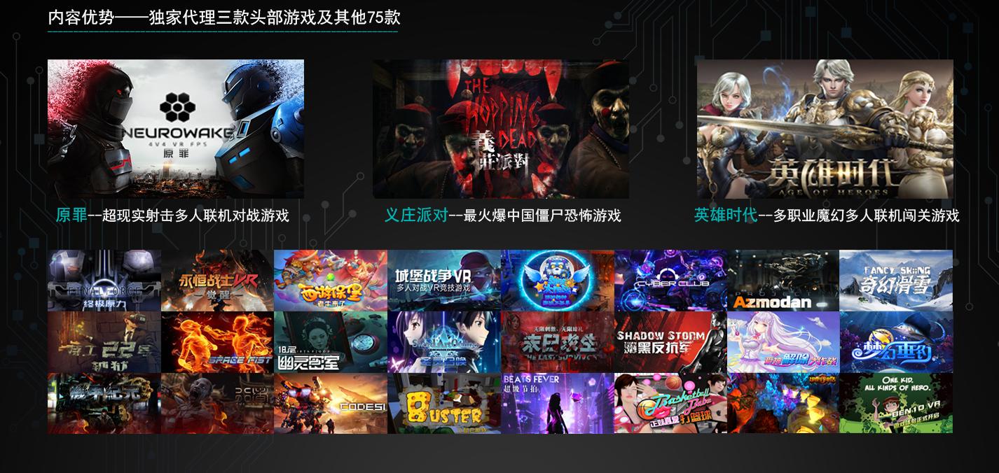 造梦科技的核心优势也就体现在建立了一个较强的VR游戏生态圈,它和全国100多家VR游戏开发商和3000多家VR线下体验店建立了合作关系,平台上共有100多款VR游戏,部分爆款游戏获得了独家或是首发资格。CEO王安镇告诉36氪,截至目前造梦科技是国内最大的面向VR线下体验店的游戏平台。